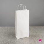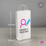 White paper bottle bags ready to print with your design. Featuring reinforced twisted handles for added strength, plus a block-bottom base and expandable side gussets that pop out for easy filling.