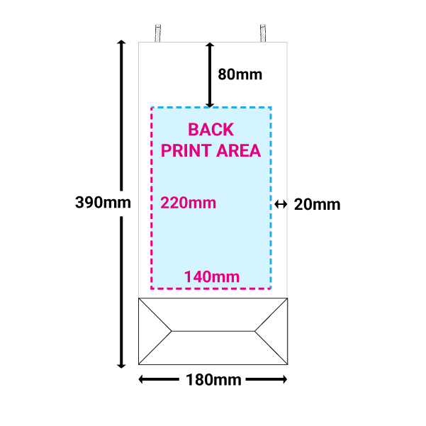 These paper carrier bags need to be flat for printing. As a result, when folded, the base covers some of the back of the bag, therefore reducing the available print area.